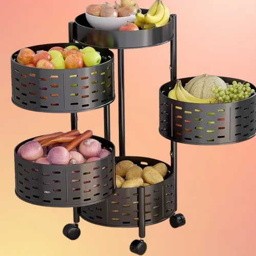 Product details of 4 Layers round shape Kitchen rack & Rotating Shelf 360 Degree Baskets Fruit Vegetable Storage Rack Floor Round Shelf With Wheels