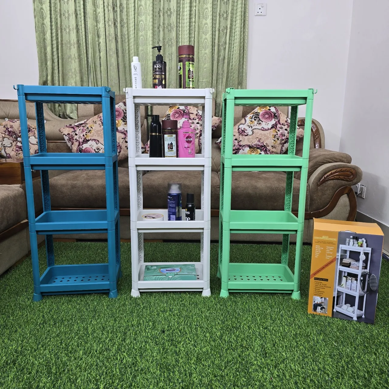 ◑Name: 4 Tiers Rectangular storage Rack.◑Material: polypropylene◑Mounting Type: Floor Mount◑use type: indoor◑Self type: Tiered Shelf◑Shelves: 4◑Shape: Rectangular◑Style: Casual◑Weight: 700 gm◑Size: length 12 inch,Wide 8 inch and height 34 inch◑Made by China